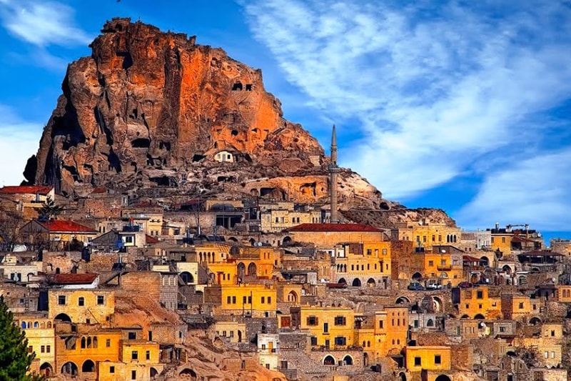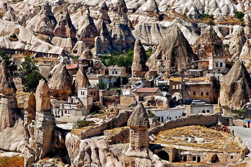 Thousands of years of wind and rain erosion on a landscape of soft volcanic stone topped with hardened larva caps has created a fascinating landscape of rock cones and pinnacles that are known as ‘fairy chimneys’. The Valley of Fairy Chimneys is the most popular area, roughly within the triangle formed by the three main towns of the region, Avanos, Urgup and the main transport hub of Nevsehir.