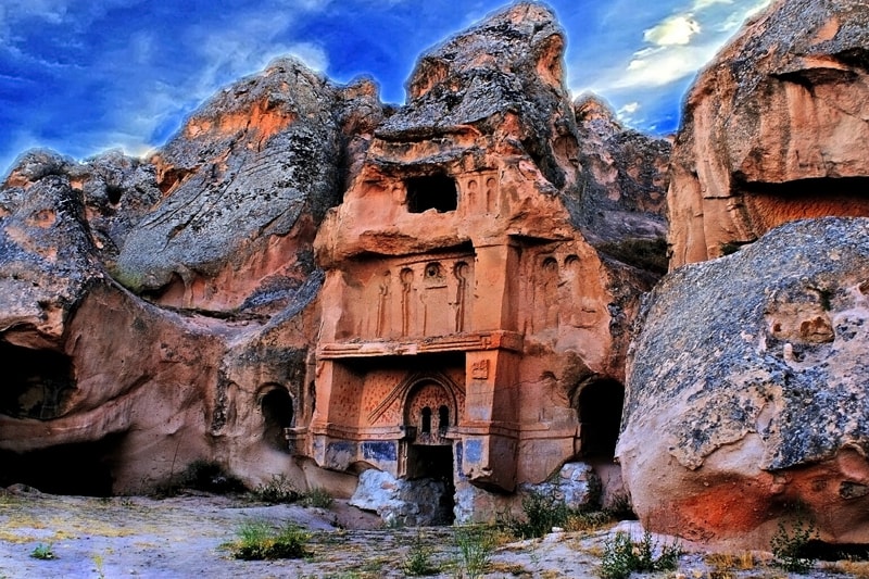 Thousands of years of wind and rain erosion on a landscape of soft volcanic stone topped with hardened larva caps has created a fascinating landscape of rock cones and pinnacles that are known as ‘fairy chimneys’. The Valley of Fairy Chimneys is the most popular area, roughly within the triangle formed by the three main towns of the region, Avanos, Urgup and the main transport hub of Nevsehir.