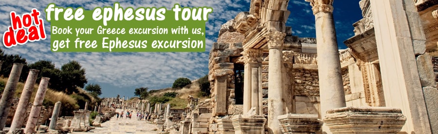 If you book one of your Greece Shore Excursion with us, we give you FREE Ephesus Tours. There is no any hidden cost for this gift. The FREE Tour option is available for Half Day Ephesus Shared Tour (CPS-17277) and Full Day Ephesus Shared Tour (CPS-17204). Please check the details of those tours on below.